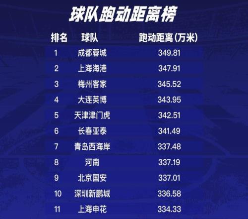 这个数据其实就是来自周定洋奠定的优势,他是上赛季中超场均跑动唯一一名超过12500米的球员,比第二名场均多跑超过1000米。